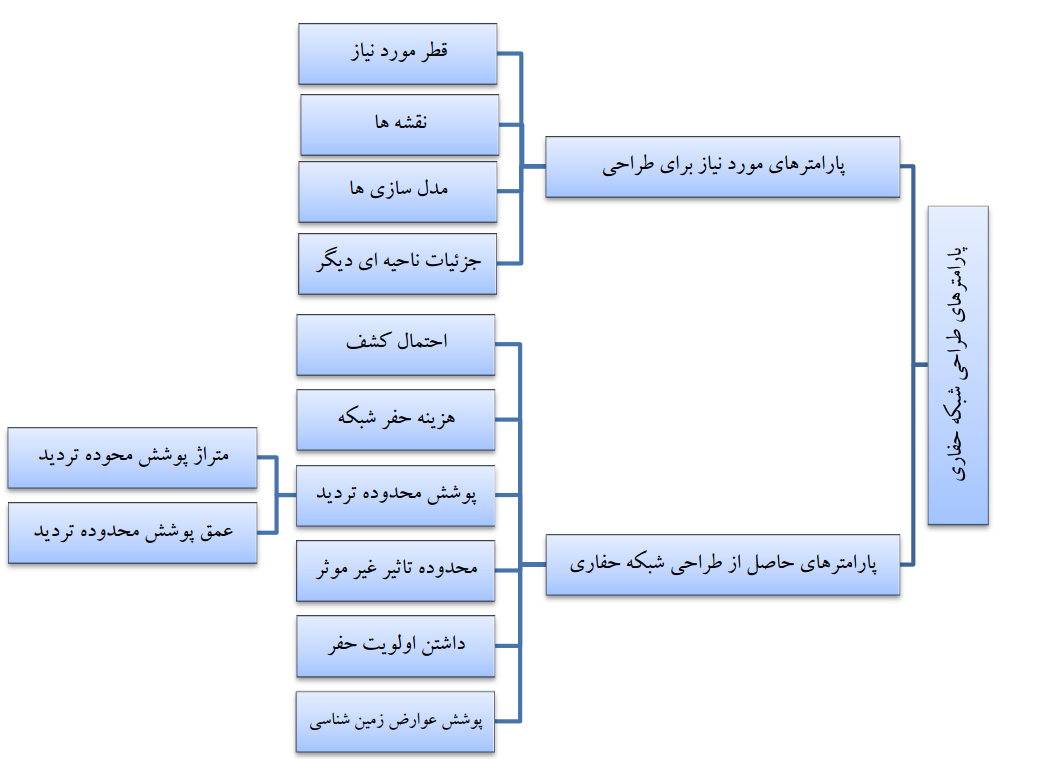 نمونه ای از یک نقشه شبکه حفاری تقاطعی مناسب اشکال منظم توسعه کانسنگ