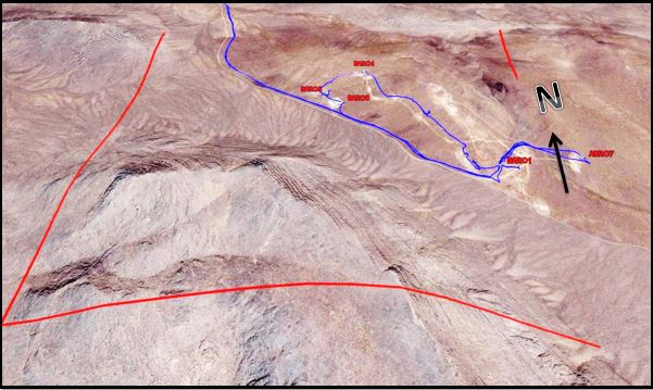 ذخیره قطعی محدوده های  معدنی تامین کننده سنگ باریت مجموعه ماهان کاوان بحر آسمان  بر اساس حجم رخنمون های سطحی و حفاری های انجام شده تا عمق 50 متری  در محوطه های کارگاهی دارای پروانه بهره برداری به بیش از 500 هزار تن ذخیره قابل اثبات باریت با خلوص میانگین 2/4  می رسد. تعمیم عمق برداشت به اعماق پایین تر ذخیره احتمالی مجموعه را تا بیش از 1 میلیون  تن اثبات مینماید. علاوه بر ماده معدنی خالص با کیفیت بالای 2/4 ، بر اساس نتایج حفاری های انجام شده بیش از 3 میلیون تن باریت مخلوط یا جیگ نیز در محدوده های تامین کننده سنگ مجموعه ماهان کاوان بحر آسمان قابل برداشت می باشد که بر اساس اندازه گیری های متعدد انجام شده میانگین 35 درصد بارهای مذکور  نیز باریت خالص می باشد. در حال حاضر بارهای جیگ مورد نظر جهت برنامه های آتی مجموعه ذخیره و دپو میگردند. در برنامه های آتی مجموعه ماهان کاوان بحر آسمان، افزایش قابل توجه سقف تولید پودر میکرونیزه باریت از طریق طراحی و جانمایی سامانه های جدایش ثقلی در موقعیت های  مختلف جهت پر عیار سازی و خالص سازی حجم بالای بارهای جیگ موجود در دستور کار قرار دارد. موقعیت سینه کارها و راه های دسترسی باز شده در یکی از  محدوده های معدنی تامین کننده سنگ باریت ماهان کاوان بحر آسمان بر روی تصاویر ماهوار ای نمایش داده شده است. همچنین در ادامه نقشه های اکتشافی یکی از مجموعه های در اختیار ماهان کاوان بحر آسمان و تصاویر  میدانی حجمی از رخنمون های باریت در سینه کارهای محوطه های کارگاهی برخی مجموعه ها نشان داده شده است.